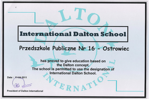 Rok szkolny 2010/2011 jest rokiem, w którym nasza placówka rozpoczęła wdrażanie w pracy dydaktyczno-wychowawczej Planu daltońskiego. Podwaliny tego systemu pracy stworzyła na początku XX wieku Amerykanka Helen Parkhurst. Celem jej modułu edukacyjnego było osiągnięcie równowagi pomiędzy talentami każdego dziecka a potrzebami społeczeństwa. Autorka w szczególności skupiła się na: